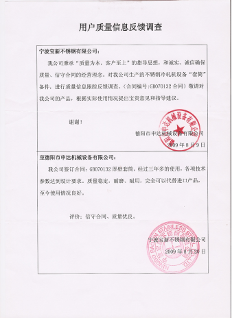 目前,國內許多不銹鋼生產廠家使用我公司產品,典型客戶有寶鋼不銹鋼分公司、寧波寶新不銹鋼有限公司、酒鋼不銹鋼冷軋項目、山西太鋼不銹鋼股份有限公司、天津太鋼天管不銹鋼有限公司、聯眾(廣州)不銹鋼有限公司、張家港浦項不銹鋼有限公司、寧波奇億不銹鋼有限公司,山東永利不銹鋼有限公司等。